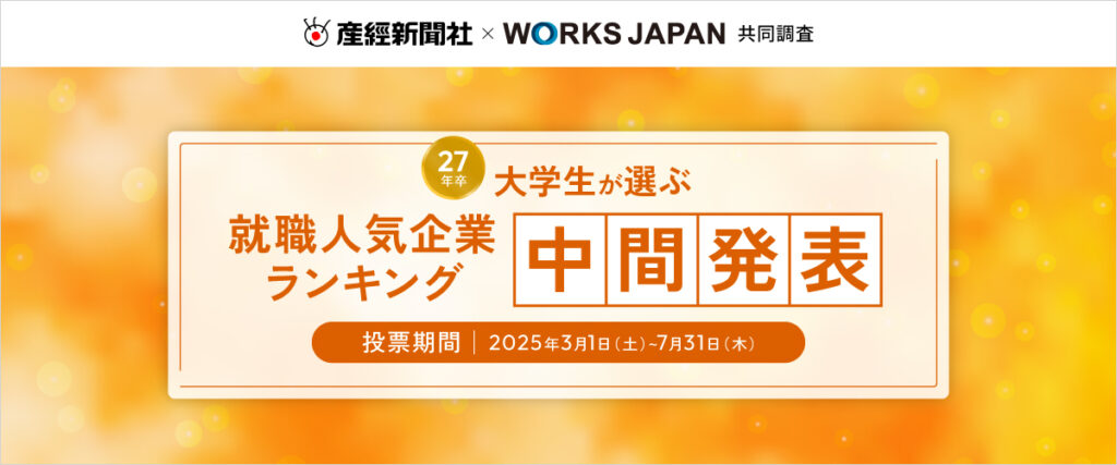 産経新聞社×ワークス・ジャパン「27卒学生が選ぶ就職人気企業ランキング」中間発表を実施